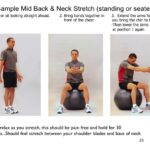 Various stretches that one can do as self-care. Stretches should be pain free and warm up prior to doing any exercises. Pictures with descriptions include stretches for: Calf, soleus, Rotator cuff muscles, Lats, Lower back, Quads, Inner Thigh, Hamstrings, Arm extensors/Flexors also while on a chair…